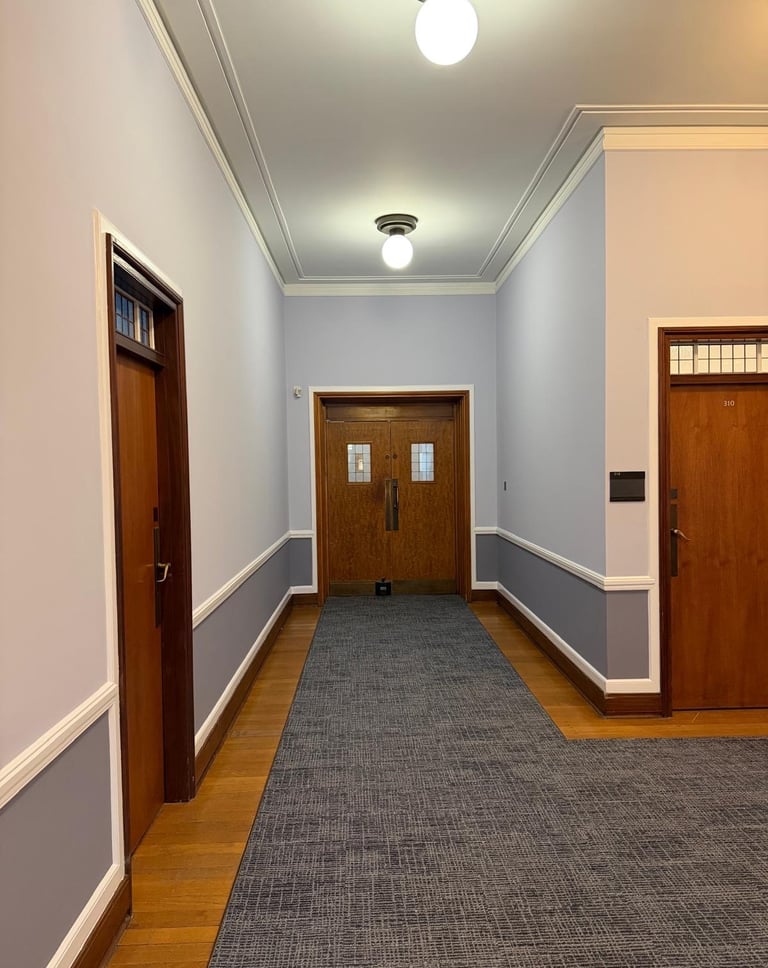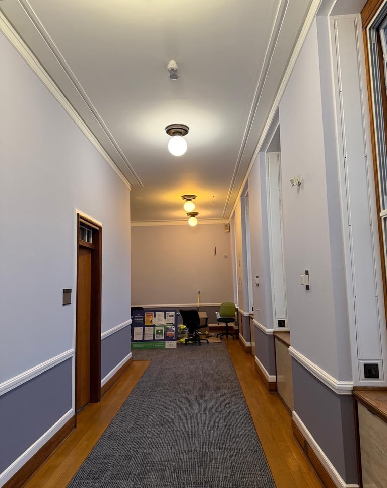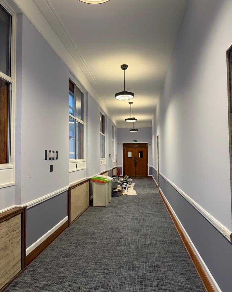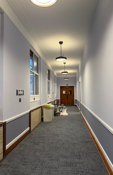 Dilaps London carried out comprehensive redecoration works across the corridors and teaching spaces within this education facility. The works delivered a refreshed, modern appearance while maintaining durability and consistency throughout high‑use areas.